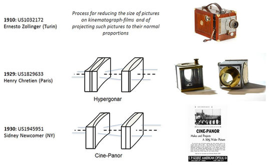 The anamorphic lens was first created to have a widescreen projection in the theatres, by compressing the image on the common film material and enlarging the image by the same factor during projection.